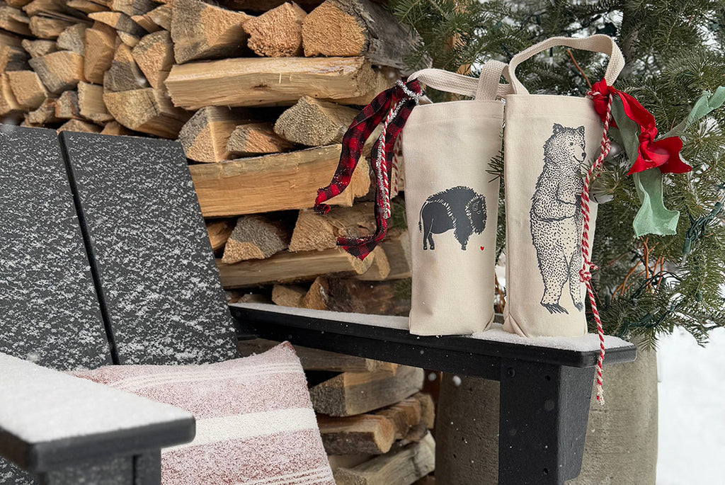 The designs are all original artwork created in Jackson Hole and silkscreened onto this wine tote. Spot cleaning recommended. Do not wash this bag, it is made from canvas material and it will shrink if you put it in the dryer!
