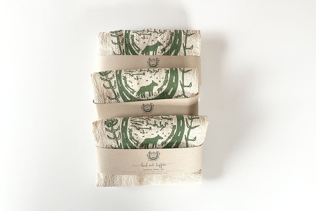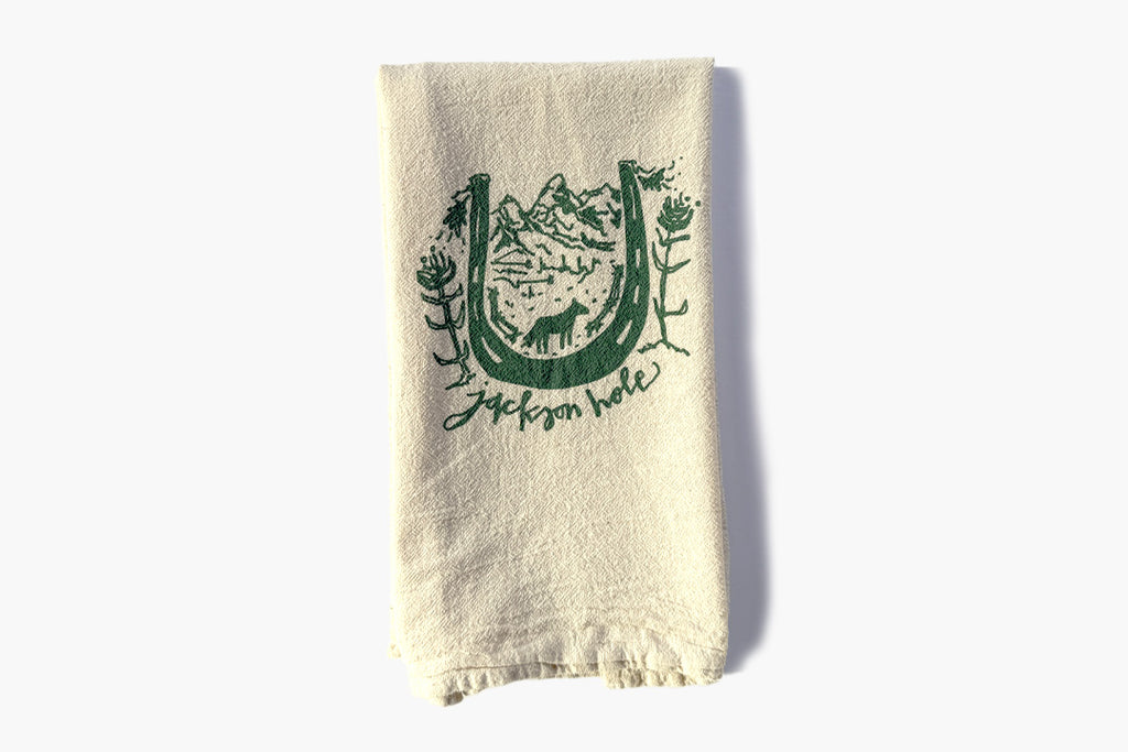 The designs are all original artwork created in Jackson Hole and silkscreened onto the tea towel. You will be able to use and wash these towels however you like!