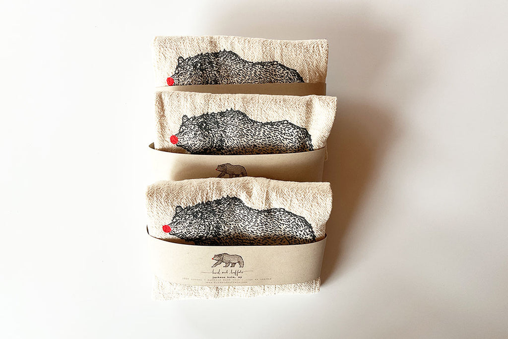 The designs are all original artwork created in Jackson Hole and silk screened onto the tea towel. You will be able to use and wash these towels however you like!